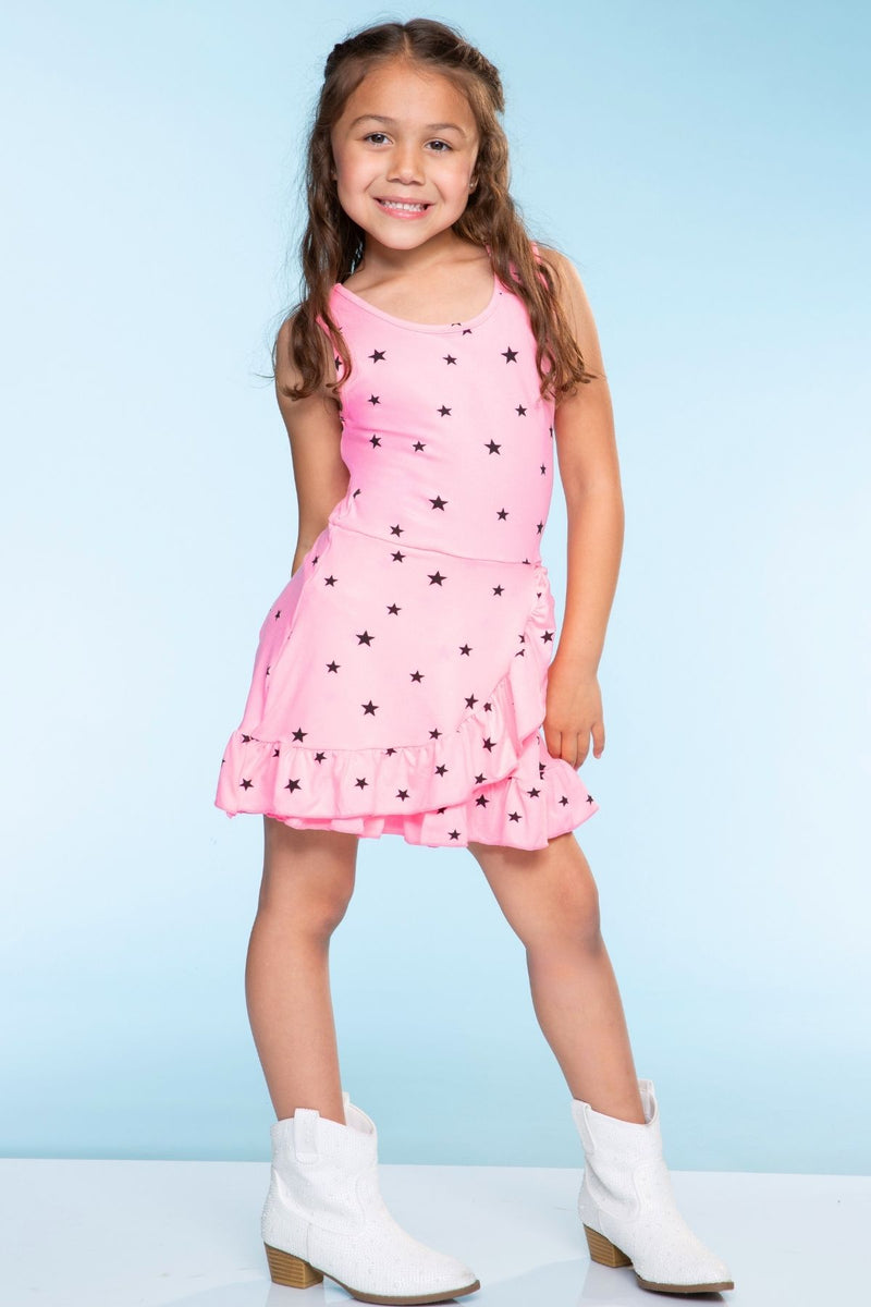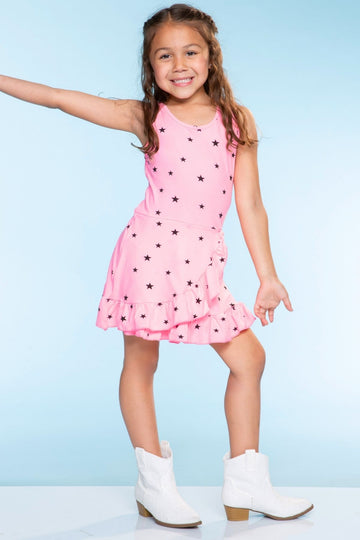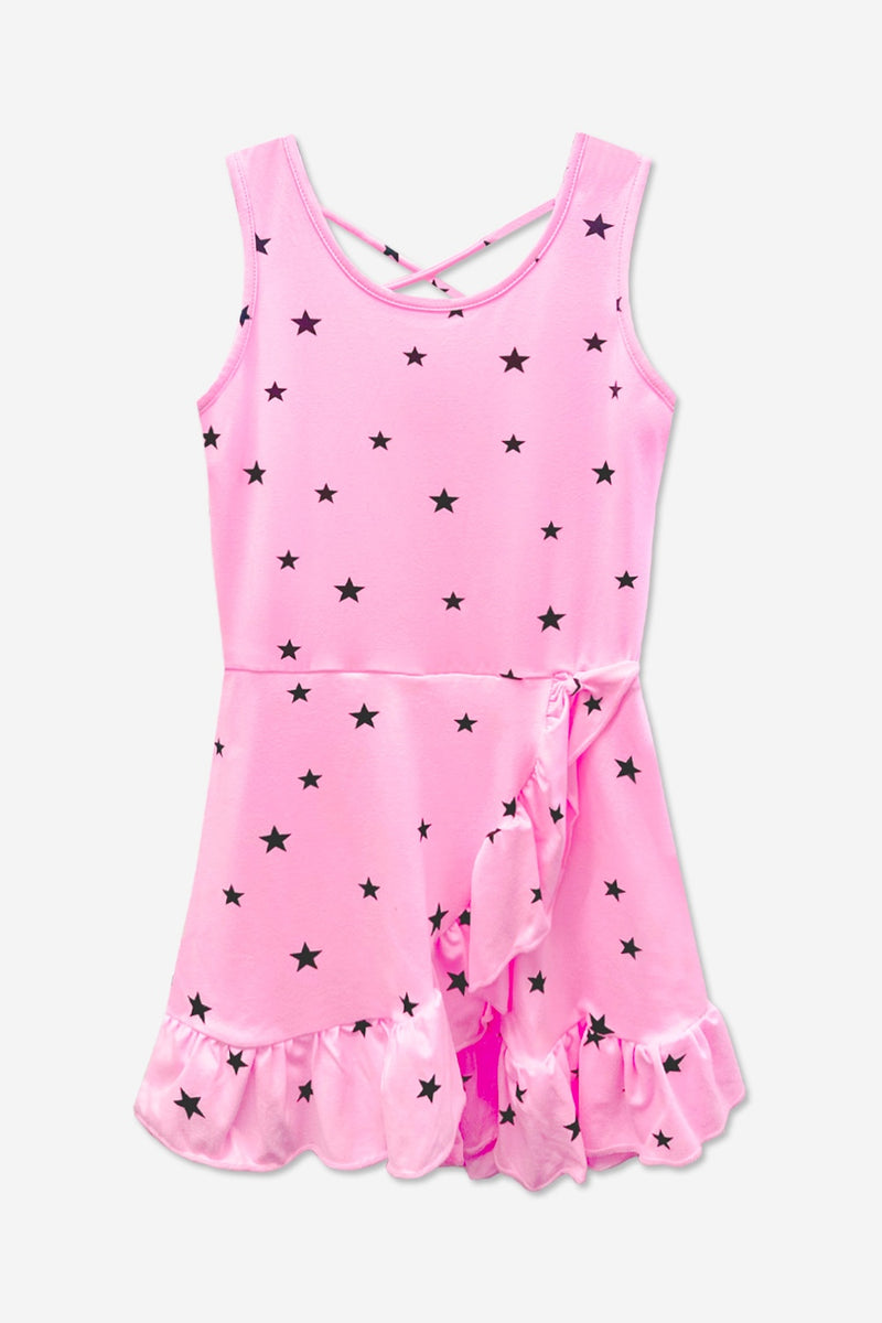 Our ruffle flounce dress features a feminine cross-back detail and fit and asymmetrical ruffle flounce skirt. Our Simply Soft fabric is ultra soft so kids rarely want to take it off! Can't go wrong with this style for your dress-loving little!